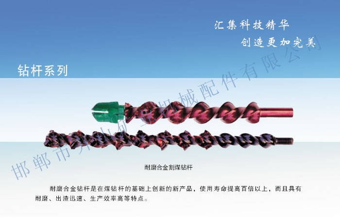 主要產(chǎn)品:鉆桿、金剛石鉆頭、煤截齒、螺旋鉆桿、支護、刮板機、鐵路配件、配套鉆具