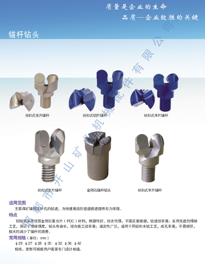 主要產品:鉆桿、金剛石鉆頭、煤截齒、螺旋鉆桿、支護、刮板機、鐵路配件、配套鉆具